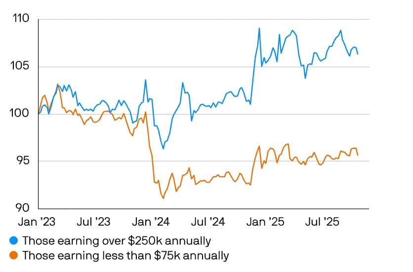 Source: J.P. Morgan Asset Management. The chart is based on select internal Chase data. Data as of 31 October 2025.